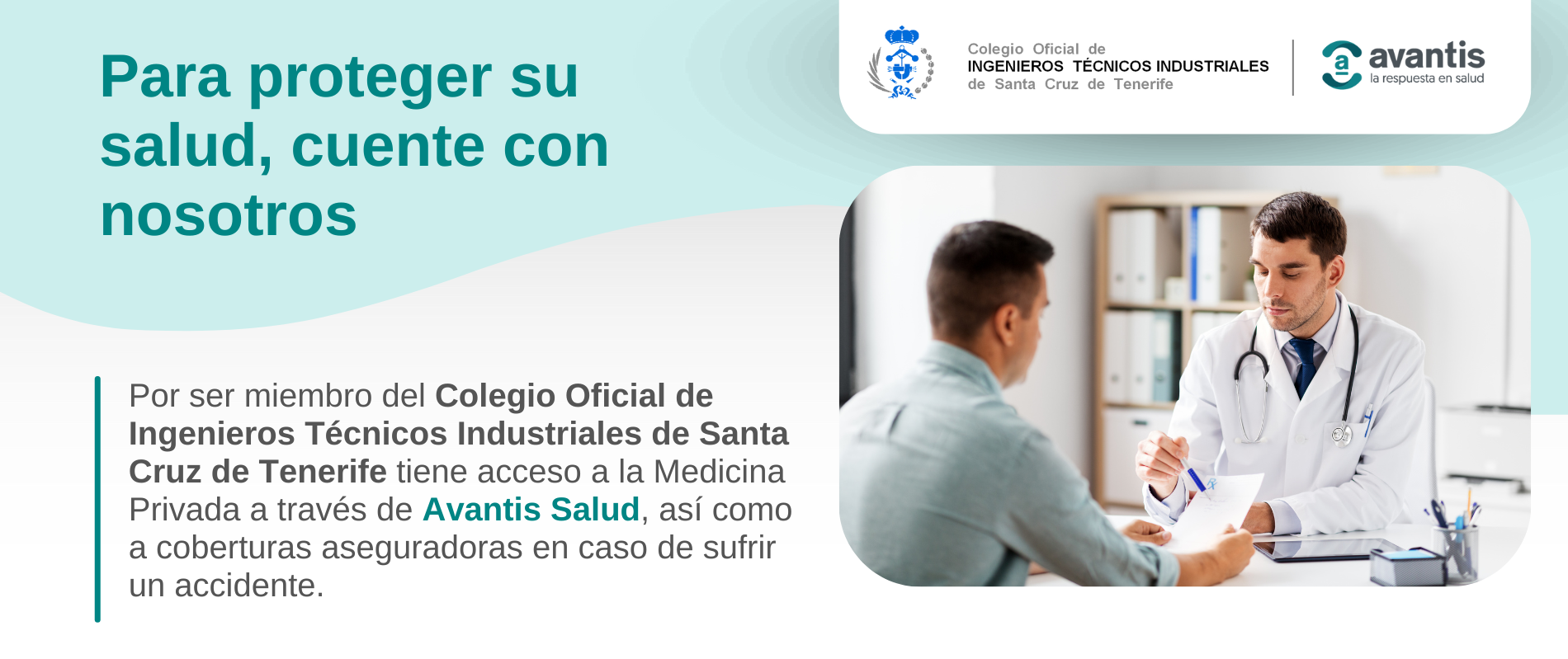 Además de los beneficios propios de ‘Avantis Salud’ como tarjeta facilitadora del acceso a la medicina privada en los casos anteriormente descritos –consultas de especialistas o pruebas diagnósticas por enfermedad, médico de confianza, servicio de psicología, etc.–, como colegiado del COITITF cuenta con coberturas aseguradoras específicas en caso de accidentes corporales, considerados como tales aquellas lesiones corporales que derivan de «una causa violenta, súbita, externa y ajena a la intencionalidad de Asegurado», y cuyas garantías cubren los siguientes actos: